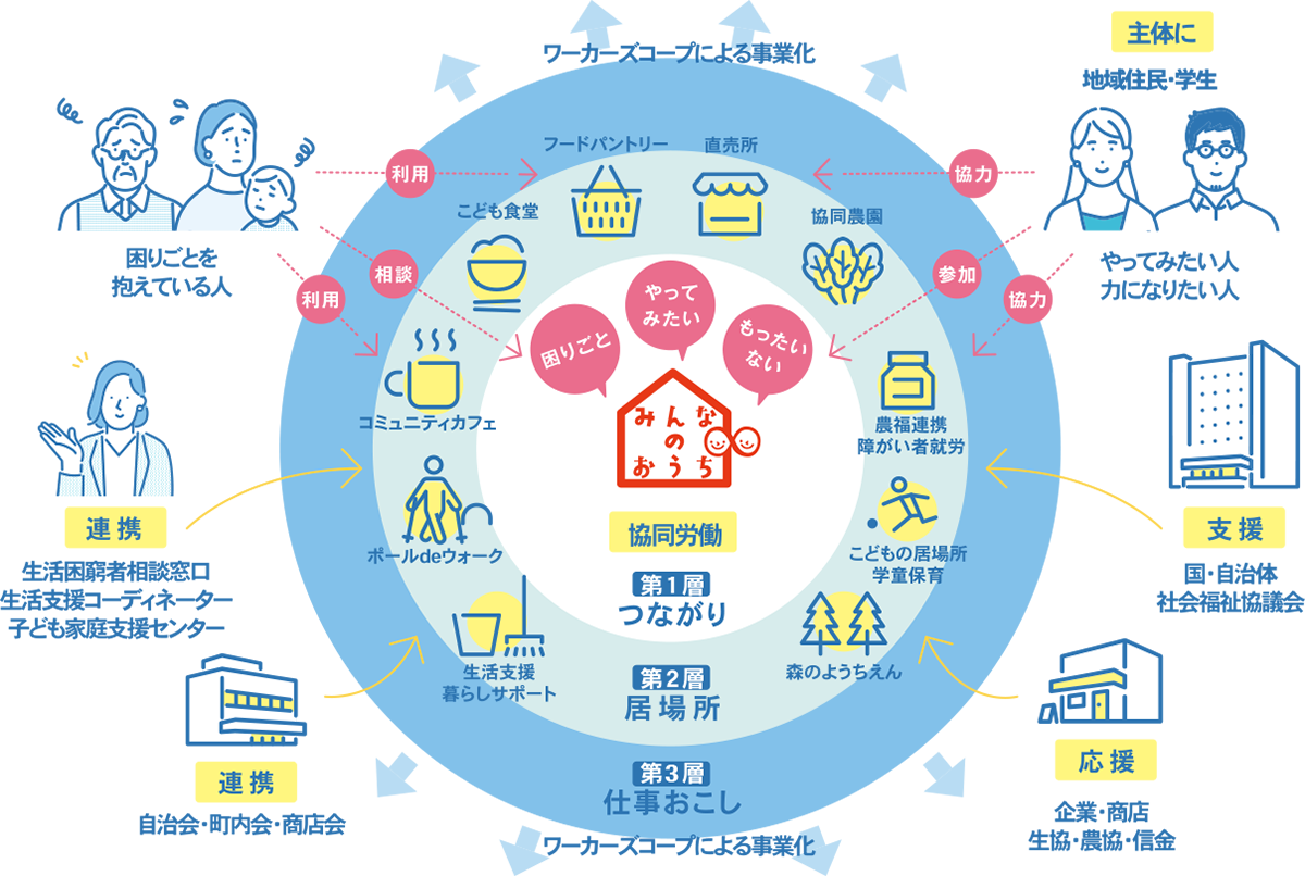 その一方、今後さらに少子高齢化が進む日本社会の状況を鑑みると、特に介護サービスの需要がさらに高まることは容易に想像できます。諸外国と比べて日本では、食品を扱う消費者生協や大学生協、そして高齢協や医療生協などが発達してきた歴史がありますが、そのような歴史を踏まえたうえで、地域の高齢者が必要とする介護サービスを調達できるよう、既存の高齢協をさらに発展させたり、既存の高齢協がない場所では新設したりすることが大切だと言えるでしょう。