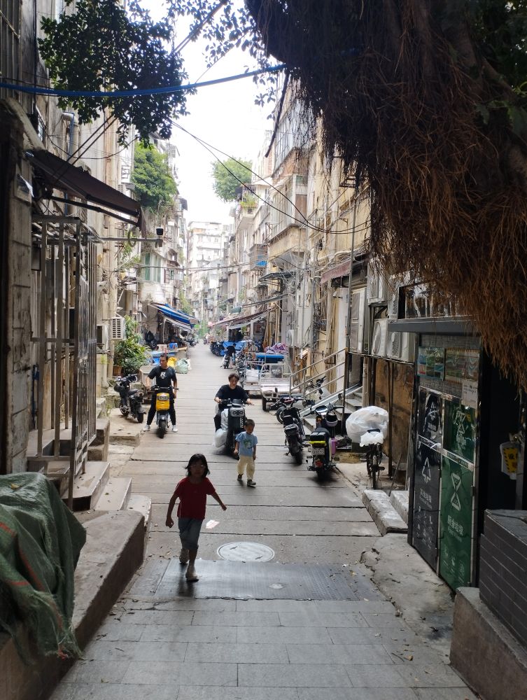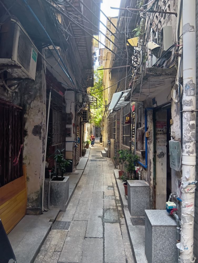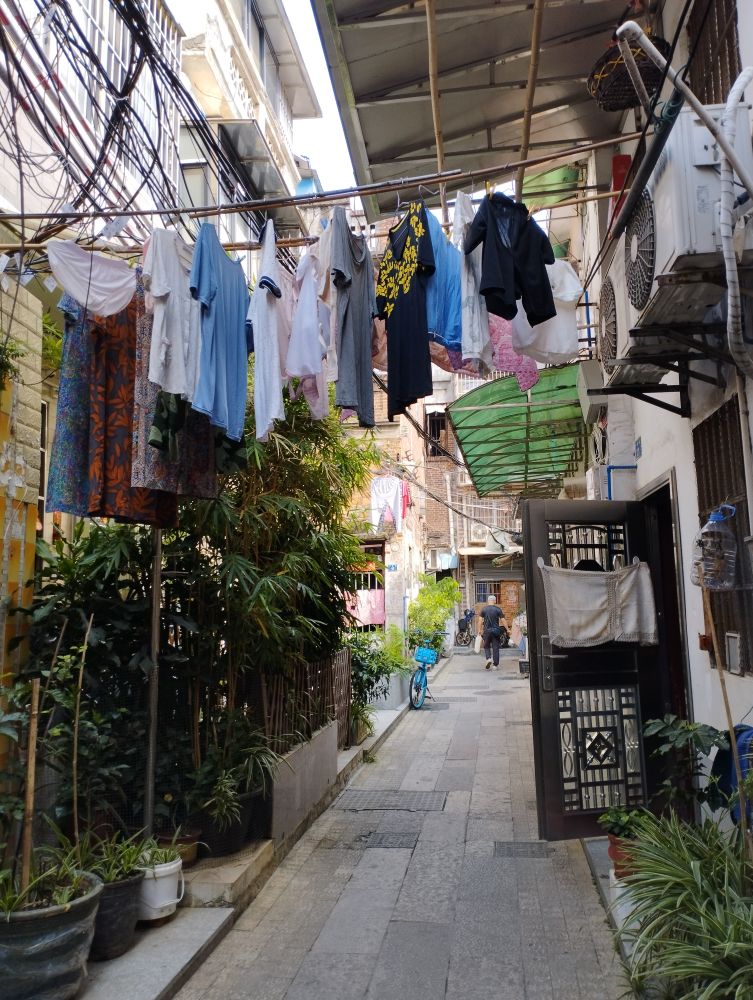 整備された中国の旧市街の例として、面白いのは整備された通りそのものより、その裏側や周辺にある、やや雑然としていて、生活臭たっぷりのエリアだ。旧市街というと平屋や二階建てが多い北方と違い、広州の旧市街はもっと垂直型だ。大通りだけでなく、路地に入っても、頻繁に上を見上げながら歩くことになるのが、いかにも人口が密集する大都市という感じがする。